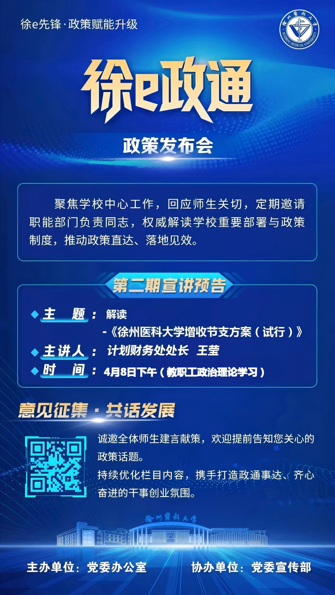 为聚焦学校中心工作,回应师生关切,学校开通“徐e政通”栏目,定期邀请职能部门负责同志,权威解读学校重要部署与政策制度,推动政策直达、落地见效。
